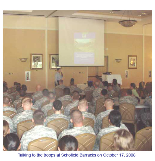 In the past, Dr. Wheeler has given of herself and has conducted free seminars for the troops here in Hawaii. The emphasis of these classes is not simply money management, but rather a much more comprehensive approach to managing one’s life. It all starts with the notion of self-management. The core element in all of this is the empowering concept of developing a personal philosophy that makes you the owner of your own destiny, and not the victim of your circumstances.