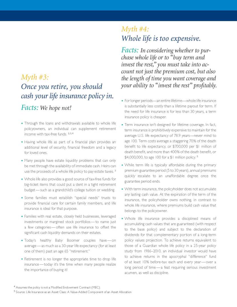 By all means, I was surprised by that last one. Why was life insurance a part of his financial portfolio? My understanding was that we received annually renewed, term life insurance through our employer; so, basically, we were covered I thought. And of course, like many others’, I did not view life insurance as a part of any financial strategy at all.